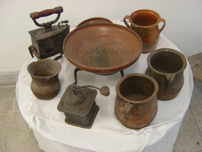 Razne posude od gline , malin za kavu, i tigla na žar